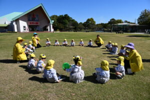 すみれ組の子どもたちが、金魚と鯉の郷広場に遠足に行きました。広い芝生で思いっきり走ったり、たくさんの遊具で遊んだりしました!お弁当もおいしかったです!