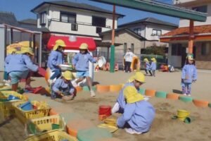 • 2026年1月14日ブログ朝はとても寒いですが、お昼はぽかぽかで、お外遊びも楽しいです!すみれ組のみんなは、砂遊びが大好き!