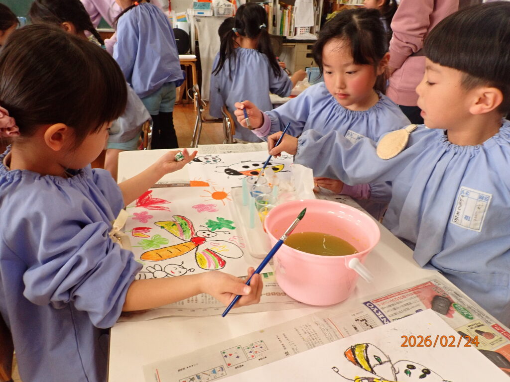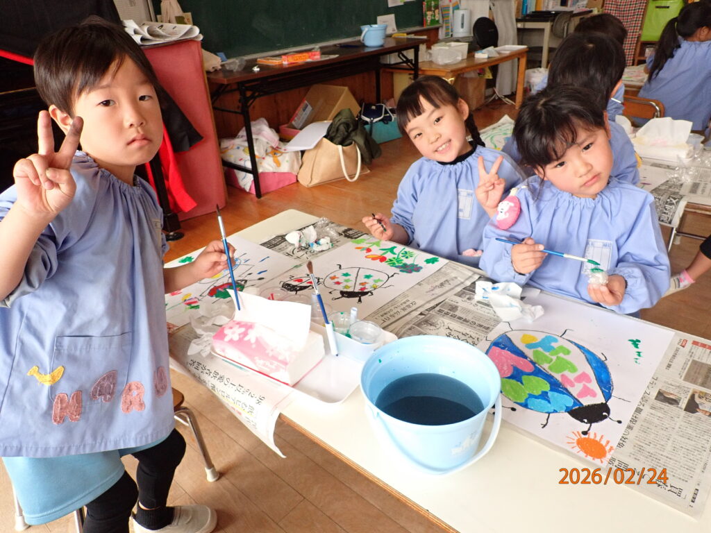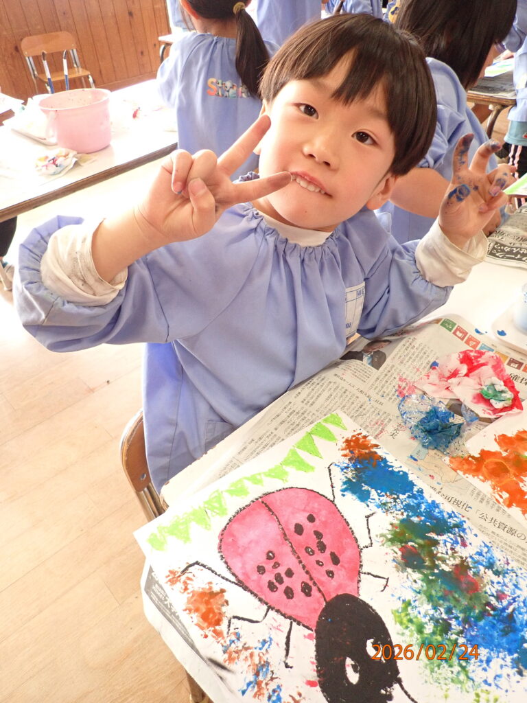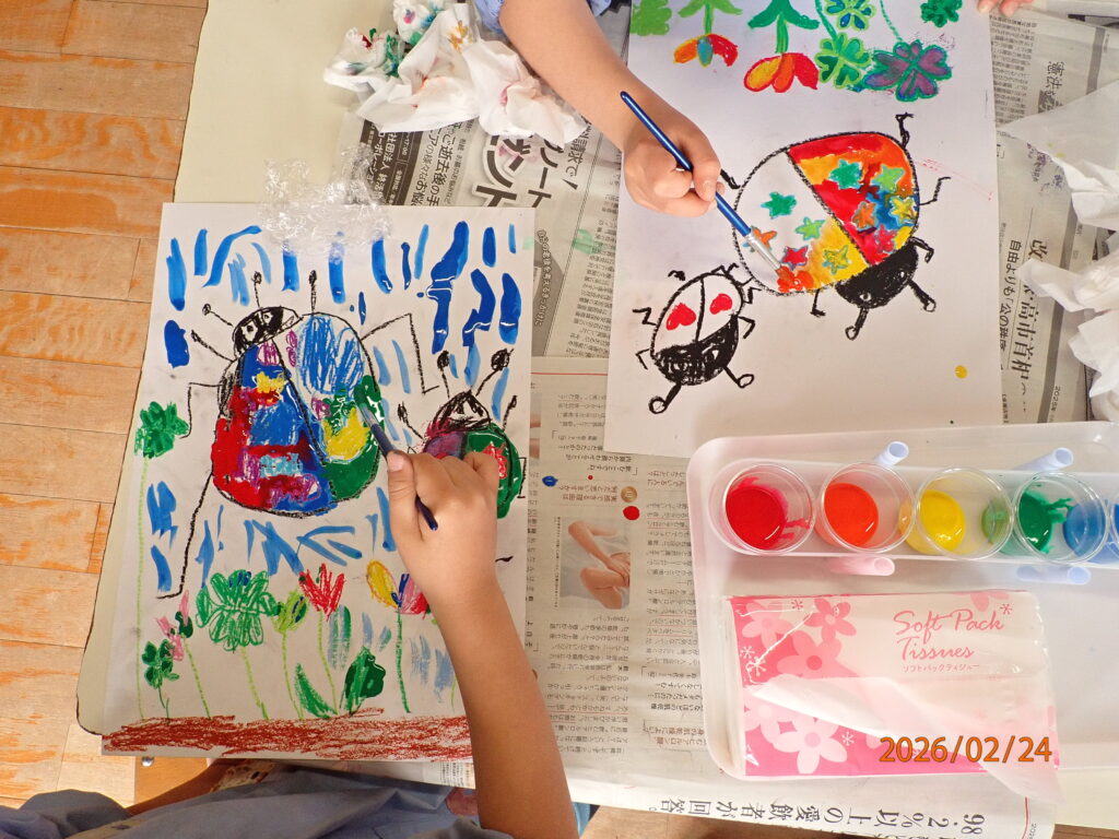 たんぽぽ組の今年度最後の絵画教室でした!クレパスと絵の具を使って可愛い「ちょうちょ」や「てんとうむし」などが描けました!